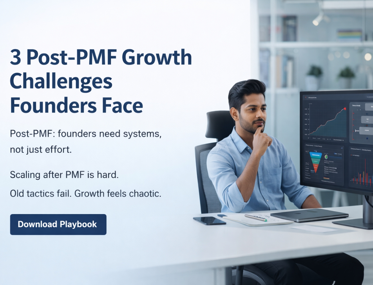 Once product-market fit is achieved, most founders expect growth to accelerate smoothly. Instead, revenue becomes unpredictable, teams slow down, and messaging starts to blur. This playbook shows why old tactics stop working post-PMF and what systems are required to create reliable, scalable growth.